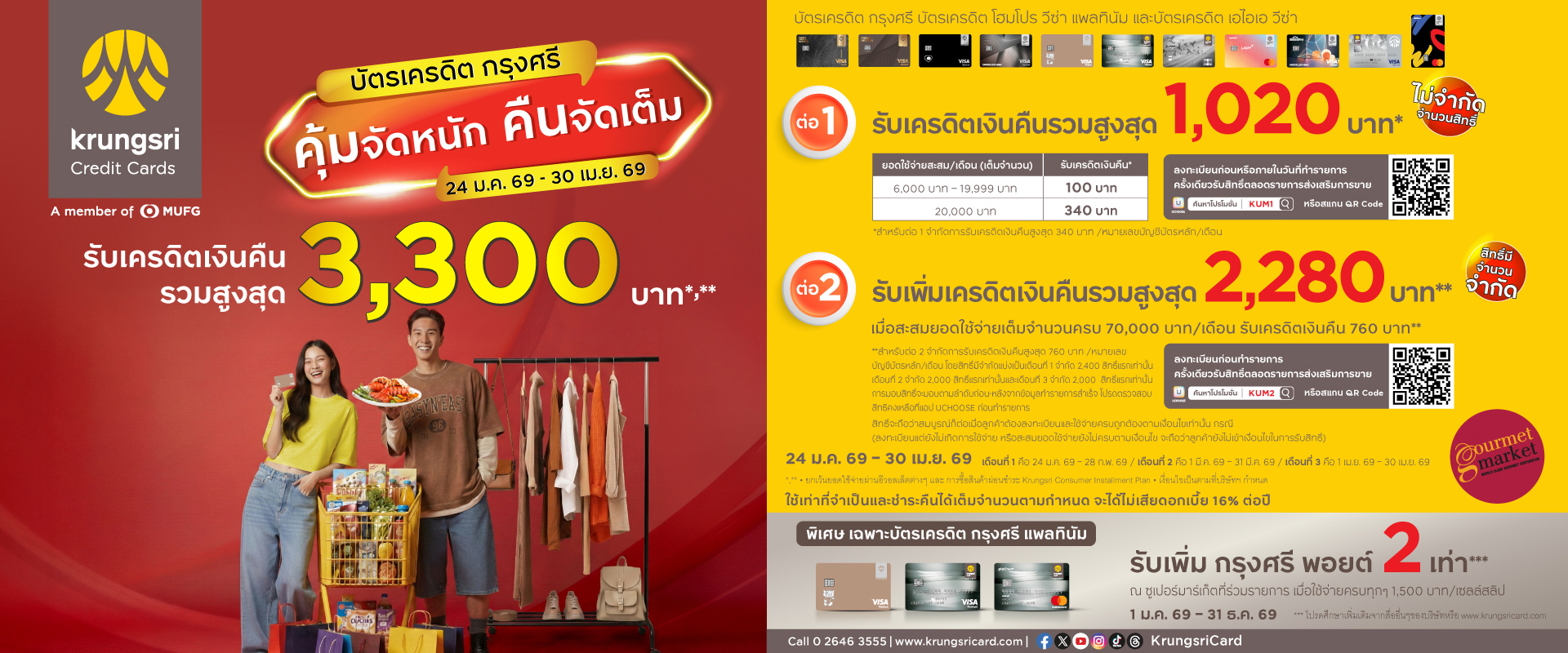 บัตรเครดิต GSB รับเครดิตเงินคืนรวมสูงสุด 5,400 บาท