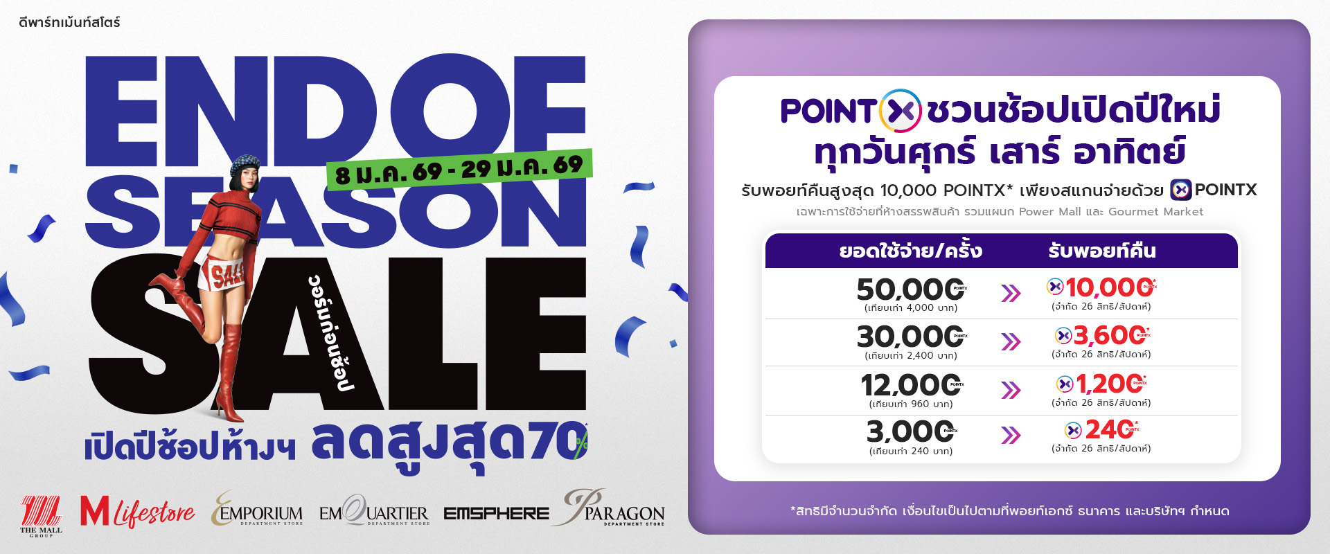 คะแนนสะสม POINTX : รับคะแนนสะสมพิเศษสูงสุด 10,000 คะแนน