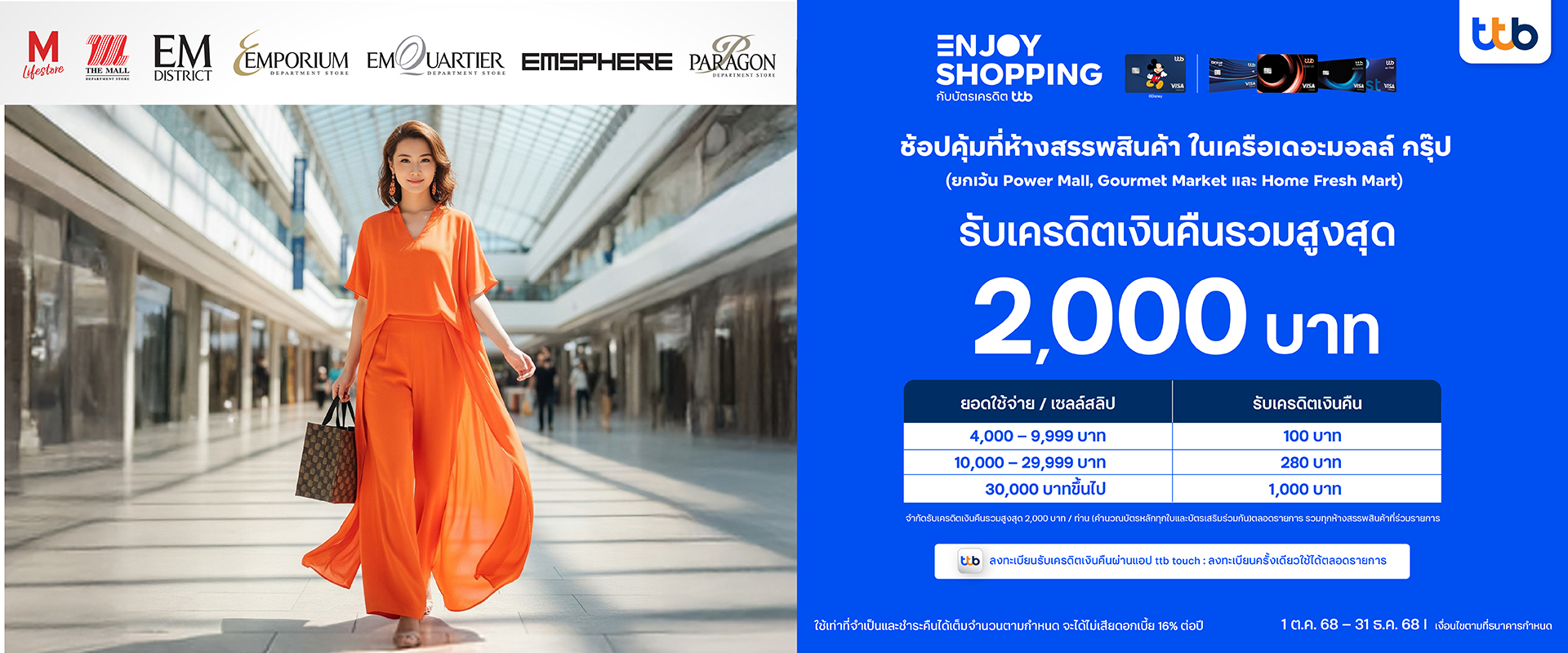 TTB ผ่อนชำระ 0% ทุกชิ้น นานสูงสุด 10 เดือน