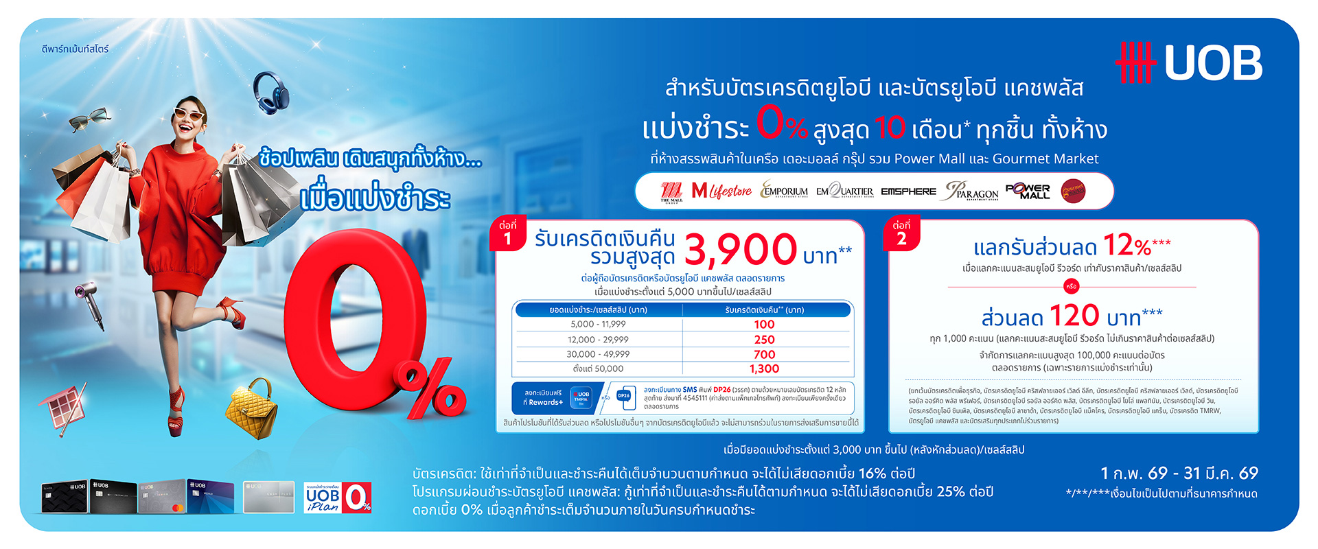 บัตรเครดิต UOB รับเครดิตเงินคืนรวมสูงสุด 450 บาท