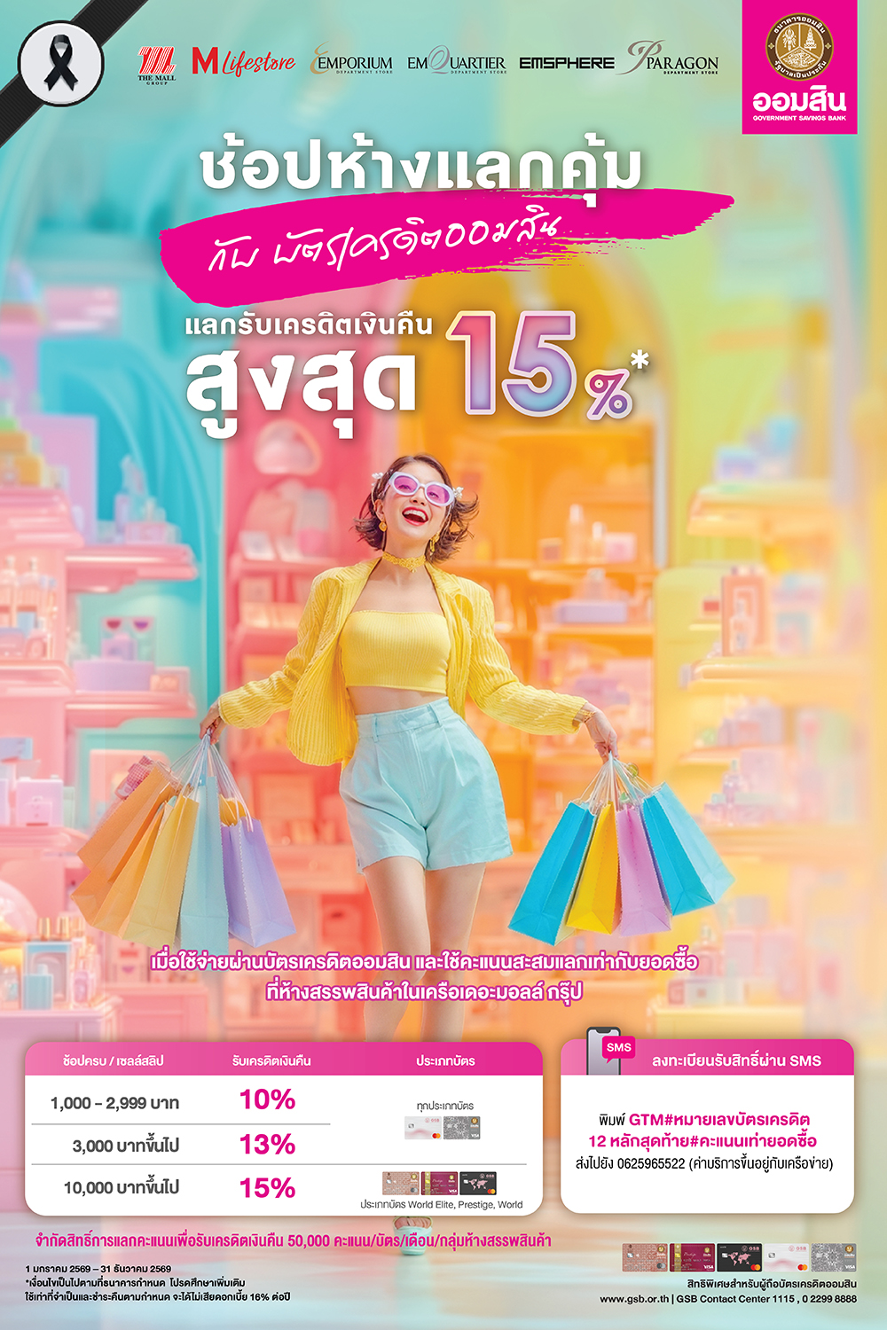 บัตร AMEX รับเครดิตเงินคืนสูงสุด 15%
