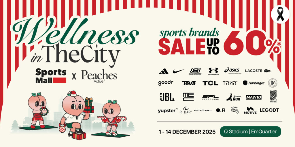 เตรียมตัวให้พร้อม! เทศกาลส่งท้ายปีที่สายฟิต สายแฟชั่นกีฬา และสายเวิร์กเอาต์ห้ามพลาด กับงาน 𝗦𝗽𝗼𝗿𝘁𝘀𝗠𝗮𝗹𝗹 𝘅 𝗣𝗲𝗮𝗰𝗵𝗲𝘀 𝗔𝗰𝘁𝗶𝘃𝗲 – 𝗪𝗲𝗹𝗹𝗻𝗲𝘀𝘀 𝗶𝗻 𝘁𝗵𝗲 𝗖𝗶𝘁𝘆