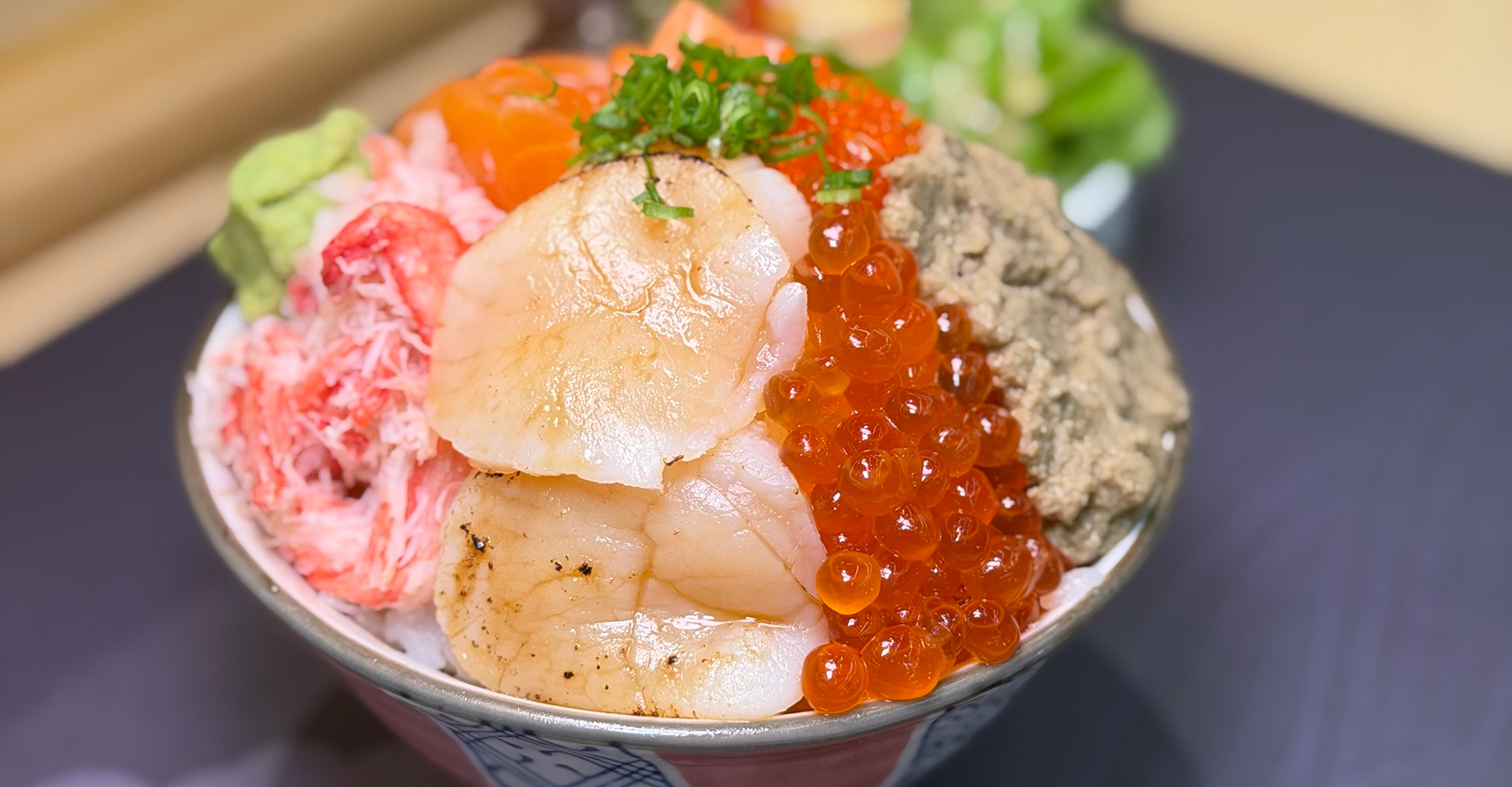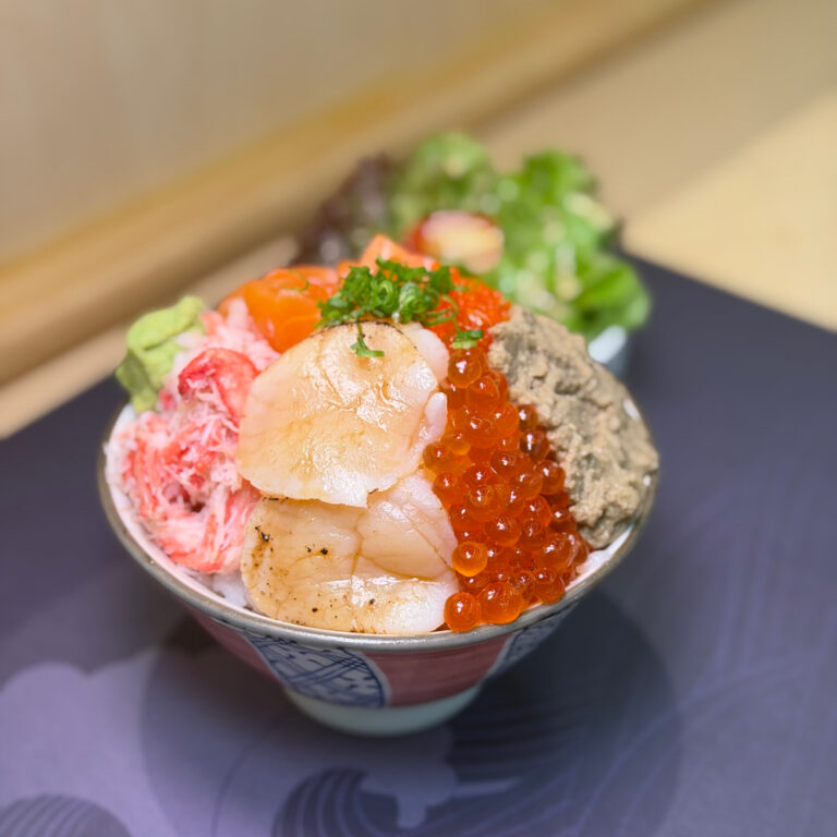 Kanimiso to don เมนูสุดฮิต ข้าวหน้า มันปู อิคุระ หอยเซล เนื้อปู ไข่กุ้ง และมีเป็นเซต ชา สลัด ซุป มาพร้อม